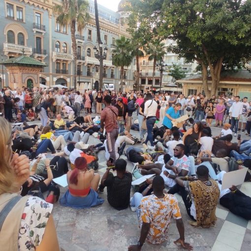 MARI: «El trato de personas marroquís…, pues unas bien y otras mal. Las personas de color negra no tienen libertad. Aquí, hay mucha gente, hombres y mujeres que duermen fuera, otras están embarazadas, gente… Hay hombres allí que pegan a personas por coger su dinero, sus cosas…».