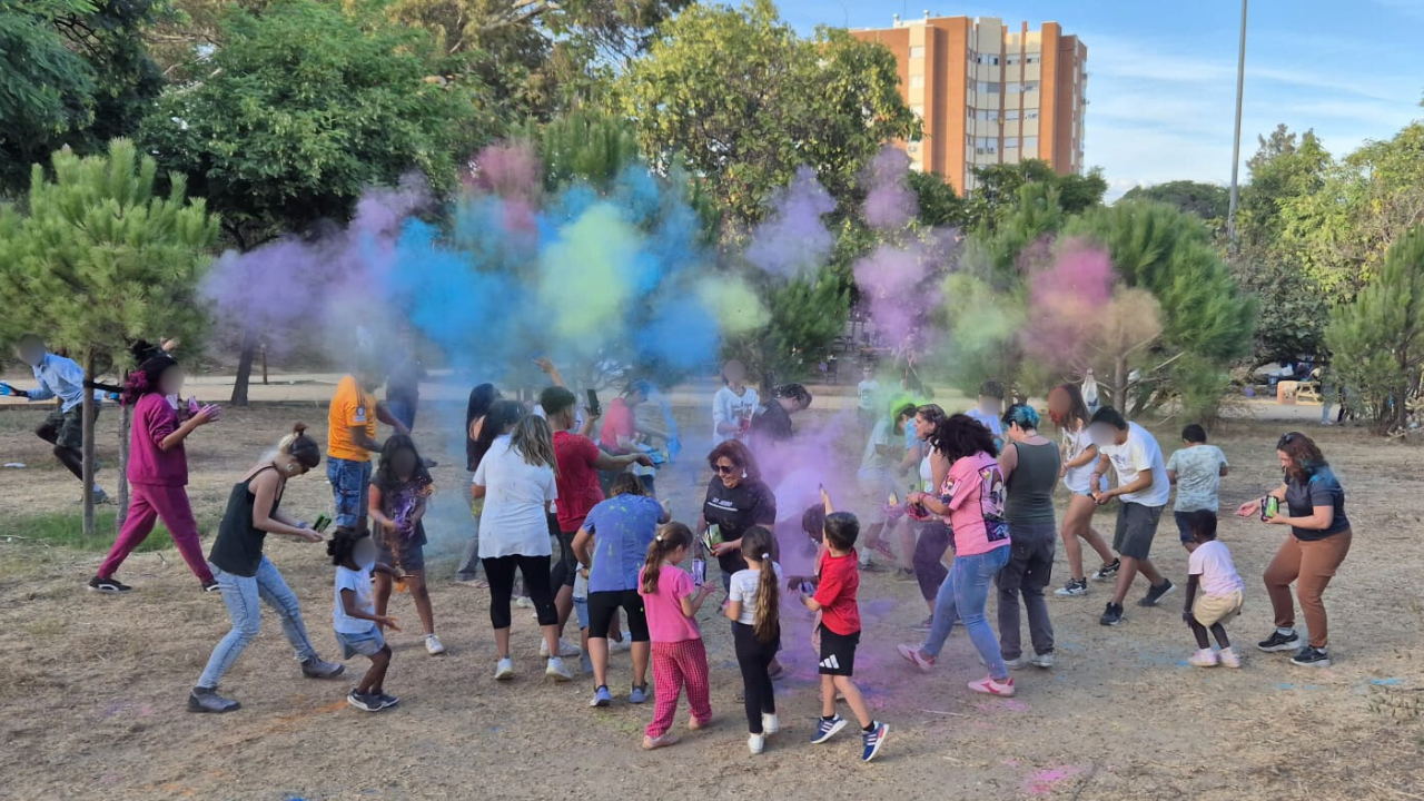 Nuestra emblemática holy party puso el colofón a este sábado brillante y luminoso de principios de otoño. Toda una explosión de colores al aire y sobre las personas participantes en esta actividad para poner el punto final a este día cargado de muchísimas emociones. Ya estamos contando los días para que llegue la que será la IX Convivencia Intercultural de Huelva Acoge.