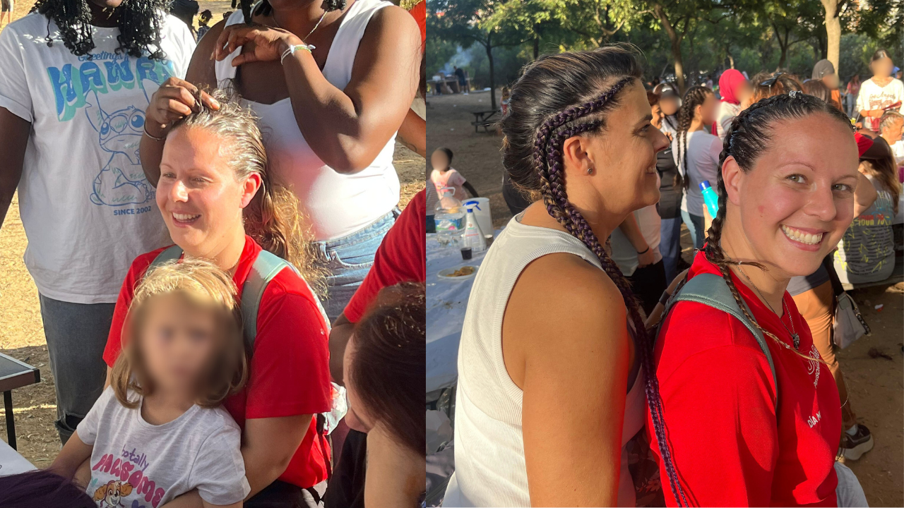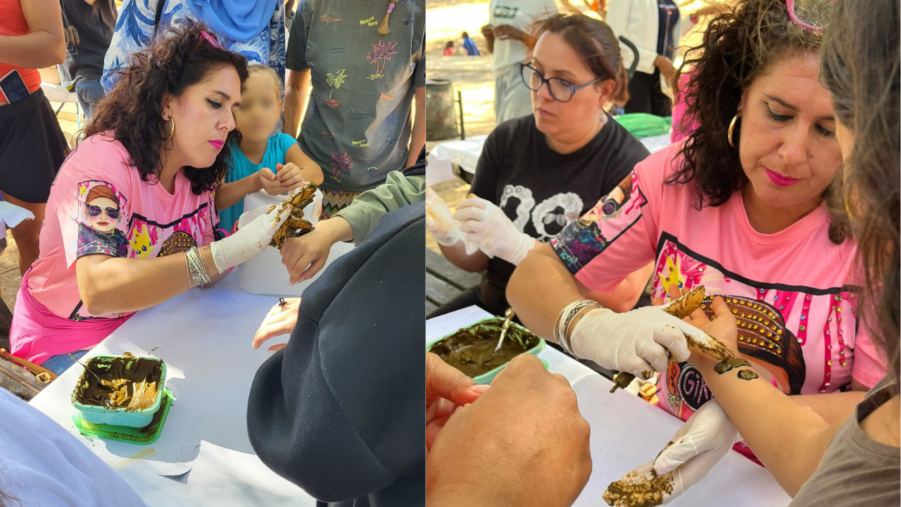 Posteriormente, compartimos todxs juntxs un rico almuerzo en la zona de los merenderos para coger fuerzas y proseguir con el resto de actividades: realización de dibujos con henna sobre la piel, preparación de trenzas y “pintacaras”, con el que se divirtieron mucho lxs más pequeñxs.