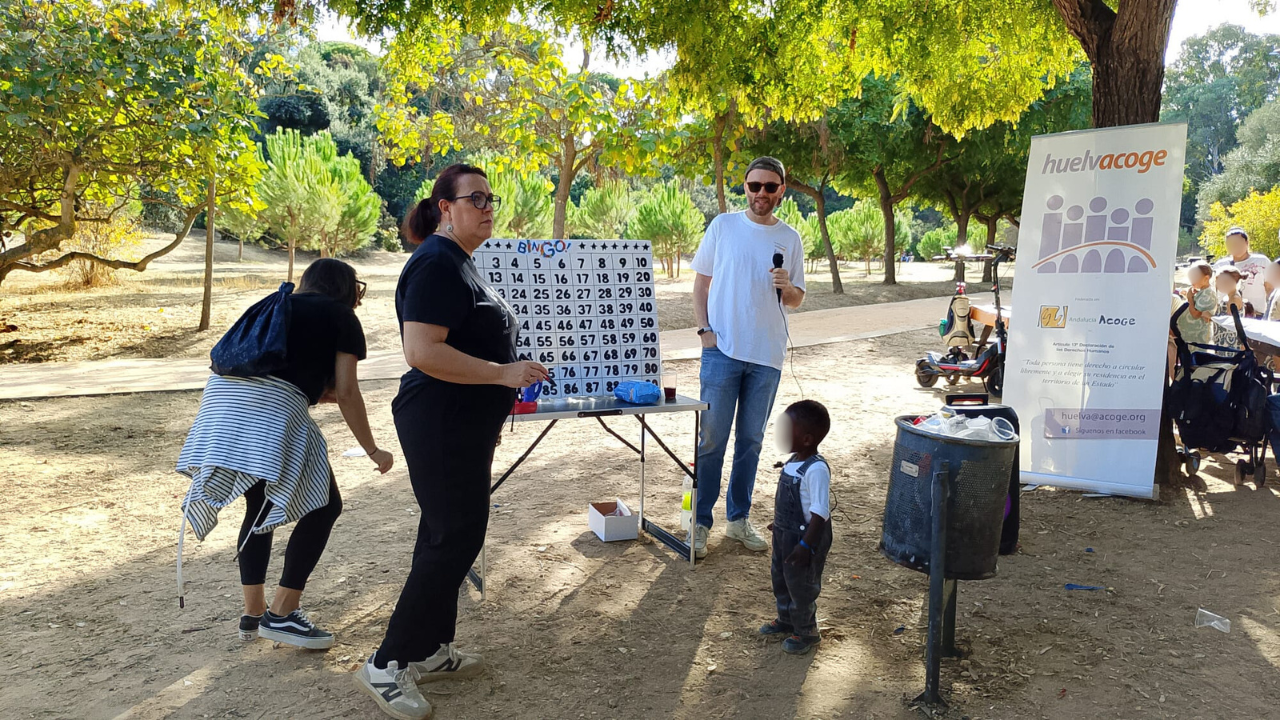 Este espacio de encuentro tuvo lugar un año más en el Parque Moret de Huelva. Una zona natural y abierta en la vertiente elevada de la ciudad que propicia la celebración de este día. En torno a un centenar de personas, entre adultxs, niñxs y adolescentes, disfrutaron de este evento anual de Huelva Acoge al aire libre.